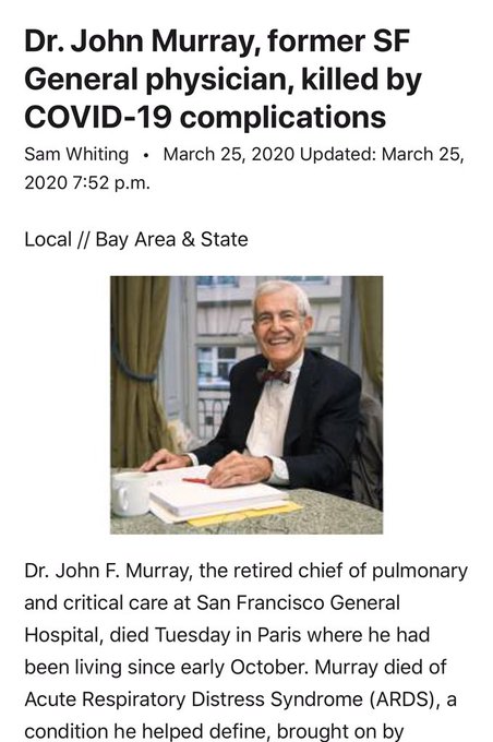 Dünyaya ARDS (akut solunum sıkıntısı sendromu) tanımını ve nasıl tedavi edileceğini öğreten göğüs hastalıkları ve yoğun bakım uzmanı Dr. John Murray #COVID19 komplikasyonundan biri olan ARDS sonucu ölmüş.